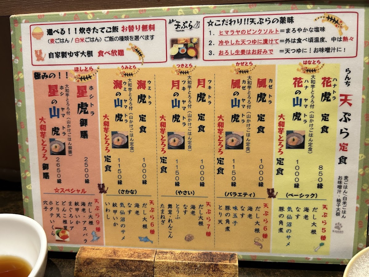 The lunch sets are not only satisfying but also affordable, with the 風の山虎定食 (Windy Mountain Tiger Set) priced around ¥1150. Coupled with refreshing sides like the all-you-can-eat ゆず大根 (yuzu pickled daikon), this meal leaves you feeling both pampered and fulfilled. Diners rave about the taste and quality, often remarking that the tempura reminds them of the best home-cooked meals, while the crispy texture is the star of the show.